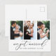 Modern, enkel, minimalistisk, men ändå Elegant 3 fotodelikat calligrafiskript Vi Har Gift Bröllop annons Postcard