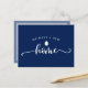Låt dina vänner och familj veta att du har flyttat med det moderna minimalistiska vykortet. Framsidans design är enkel med ordet "hem" som visas i en handskriven kalligrafi på en mörkblå bakgrund. Baksidan låter dig meddela din nya adress.