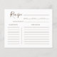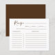 Detta minimalistiska kalligrafi bröllopsfest receptkort är perfekt för en enkel bröllopsfest. Designen har en vacker kalligrafiskrift på en brun bakgrund för att försköna ditt evenemang.