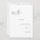 En elegant, svartvit minimalistisk design med ett modernt Spara datumkalligrafiskript. Anpassa enkelt med valfri information, inklusive fotot från fantastisk på baksidan av kortet. En perfekt passande plats för vilken tematjänst som helst i bröllop.
