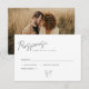 En elegant kalligrafisk skrift pryder detta minimalistiska enkla svart-vita svars kort för RSVP. Anpassa enkelt din bröllopsdatum och fantastiska foto efter eget val.