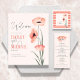 Dessa enkla menyer i bröllop på 4 tum x 9 tum har en enda korallvattenfärgsmälla Menyn innehåller platshållare för två aptisatorer, två poster och två desserter. Lägg till parets namn tillsammans med bröllop webbplats för att skapa din egen QR-kod på baksidan.