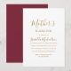 Enkel minimalistisk vinröd och guld kristen dopfest för bebis inbjudan har vacker kalligrafi på framsidan och en enfärgat vinröd baksida. Fira den blivande mamman och bebisen med en tid av välsignelse, bön, vänskap, uppmuntran och gemenskap. Medan en baby shower fokuserar på att ge fysiska presenter till den blivande mamman, fokuserar en dopfest mer på att omsluta den blivande mamman och bebisen i bön och gemenskap. Vacker inbjudan är perfekt för en katolsk dopfest.