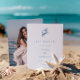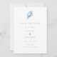 Blått minimalistiskt Vintage Blommigt Seashell Coastal Photo Bröllop spara datum med ditt foto på motsatt sida.