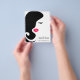 Denna design har en minimalistisk och modern estetik, perfekt lämpad för skönhetssalonger, sminkartister och estetiker som specialiserar sig på skönhet och permanent smink. Produkten visar en djärv, svart-vit siluett av en kvinnas ansikte med en elegant, virvlade frisyr och slående rosa läppar som fångar uppmärksamheten. Enkel men sofistikerad, designen förmedlar en konstnärlig representation av skönhetssalongindustrin. Det övergripande utseendet är rent och modernt, med fokus på det väsentliga, vilket gör det till ett idealiskt val för proffs som vill göra ett bestående intryck. Helt personlig och anpassningsbar.