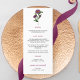 Öka din bröllopsmottagning med vårt elegant bröllop-menykort med vår minimalistiska lila-stjärnblomskondesign med modern kalligrafi. Den lättlästa typografin gör att gästerna enkelt kan navigera på menyn samtidigt som du får en något sofistikerad inställning i bord. Perfekt för det moderna par tittar att imponera på sina gäster med en snyggt och romantisk beröring på deras speciella dag.