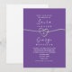 Enkel, elegant kalligrafisk script, minimalistisk lila bröllopsinbjudan med falskt silverrep hjärta.