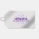 Lägg till en festlig beröring till årets slut och julklappens ge upplevelser med dessa minimalistiska märkre, som innehåller hälsning "God jul", som återges med vita blockbokstäver och snöflingor på en faux metallisk lila foil/ombre/moire-bakgrund. Omvänd visar en vit moire i snö. Anpassa hälsning, namn på avsändare och anpassningsbar efter behov. Design © W.H. Sim. Se mer på zazzle.com/expressionsoccasions