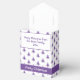Använda textmallen som medföljer för att anpassa meddelandet under den främre klappen. Denna geometriska, lila och vita, ikoniska träd mönster skapas från en enkel Julgran-ikon. Den minimalistiska utformningen av eleganten är roligten för att gynna presenter i ditt hem eller i företaget party i julhelgen
