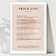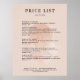 Minimilistisk affisch med prislista för kvinna i meditation.