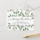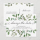 Detta trendiga botaniska bröllopsetikett för uppskjutande eller ombokning av brölloppsdatum har en ram av frodiga akvarellgröna blad och några små bär på en ren vit bakgrund. Orden "ändra datum" visas i elegant, virvlande kalligrafi. En enkel men stilren bröllopsdatumändring som du kommer att vara stolt över att skicka till vänner och familj om du måste skjuta upp eller boka om.