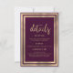 Minimalistisk lyx guld vinröd bröllopsdetalj inbjudningar