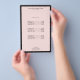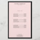En elegant och raffinerad design lyfter fram ditt namn eller företagsnamn genom minimalistisk och modern stil på denna anpassningsbara flygblad. Den tunna svarta kanten är grundad på en pastellrosa bakgrund för en lyxig estetik. Bra att använda för prislistor, tjänstemenyer eller för marknadsföringsändamål. Design © 1201AM Design Studio