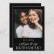 Vi presenterar vår minimalistiska skriptfoto-inbjudan till brudtärna, ett snyggt och elegant sätt att fråga dina brudtärnor. Med en ren och modern typsnittsstil, kompletterad med utrymme för ett älskat foto, utstrålar denna inbjudan enkelhet och sofistikation. Oavsett om du frågar dina närmaste vänner att stå vid din sida på din stora dag eller tacka dem för deras stöd, sätter denna inbjudan tonen för ett meningsfullt förslag. Låt oss fira vänskap och kärlek med ett förslag som är lika tidlöst och vackert som er band. Följ med oss när vi börjar denna resa tillsammans, ett elegant steg i taget.
