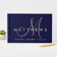 Minimalistisk marin blå Modern Grått Monogram Bröl Gästböcker