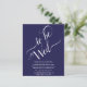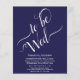 Denna enkla minimalistiska bröllopsinbjudan är elegant och stilren samtidigt som den är budgetvänlig och prisvärd. Den har en klassisk marinblå design med kalligrafiskrift som lyder: To Be Wed och all viktig information under. Det finns valfritt utrymme på baksidan för webbadressen till er bröllopswebbplats. Stilfull och sofistikerad är denna inbjudan ett underbart sätt att bjuda in vänner och familj att dela er glädje på er speciella dag.