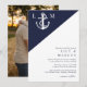 Denna marinblå och vita nautiska minimalistiska, eleganta bröllopsinbjudan kan anpassas med din information i modern typografi och ett speciellt foto på baksidan. Designad av Thisisnotme