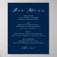 Minimalistisk marinblå vigselmeny för bröllopsbar poster
