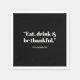 Sofistikera och tacka helgdag bord med dessa minimalistiska svarta blöjor: "Ät, Drick och var tacksamma". Designade med ren vit typografi på en fet svart bakgrund, lägger de till en modern, snyggt beröring till vilken Thanksgiving som helst eller till Friendsgiving firande. Finns som vanliga blöjor som inte är av personlig eller som anpassats med din familj namn för en speciell detalj i extra. Perfekt för helgdag, fallbröllop, cocktail party och säsong-sammankomster. Den svarta och vita neutralten passar perfekt med alla moderna, roliga eller elegant bord-inställningar. Oavsett om du är värd för en mysigt familjemjöl eller en stor Thanksgiving får de här blöjorna firande att känna sig polerad, festlig och oförglömlig.