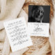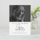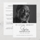 Denna förfinade mall för begravnings- eller minnesgudstjänstprogram har en slående svart-vit design, med ett foto av din älskade på framsidan som fångar deras väsen. Den minimalistiska typografin, inklusive ett elegant handskrivet manus, framhäver din älskades namn och skapar en hjärtlig hyllning. Baksidan ger utrymme för en detaljerad ordning för ceremonin med fullständigt redigerbar text. De rena linjerna och det enkla arrangemanget gör detta program till ett smakfullt och värdigt sätt att hedra ett vällevt liv och ger familj och vänner en skattad souvenir. Helt anpassningsbart låter detta program dig skapa en meningsfull firande av livet som genkling av din älskades ande.