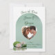 Denna minimalistiska blomma och blek grönt bröllop spara datum i akryl-rosan är ett enkelt och mycket romantiskt tillkännagivande för er speciella ceremoni. Det kan vara personlig med ditt eget foto och namn och specifik information för ditt kommande bröllop