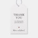 Elegant enkel och modern presentkortsetikett för bröllop som säger tack med svart teckensnitt och mörkröd burgunder dekorativ hjärta.