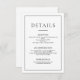 Dela all viktig information med dina gäster med stil med detta minimalistiska bilaga för bröllopsdetaljer. Med en ren svart-vit design och elegant typografi är det den perfekta matchningen till moderna bröllopsinbjudningar.