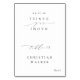 Elegant minimalistisk modern chic script-design med tidlös serif-teckensnitt i svart och vitt, och parets namn på baksidan, enkel och ren. Underbara vikbara platskort för romantisk minimalistisk bröllop, modern klassisk bröllop, enkelt lyxigt bröllop.