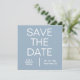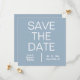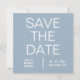 Ett modernt sätt att spara datumkortet i dammig blått. Den kvadratiska formen och den enkla typografin skapar ett minimalistiskt och trendig estetiskt. Anpassa detaljerna på framsidan och baksidan för ditt eget anpassningsbar-meddelandekort.