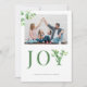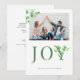 Modern trendig grön vinterfirande familjefoto julkort med JOY typografi script bokstäver med botanisk grönska. ++++++++++ Anpassa detta med din bild (horisontell orientering) och text på båda sidor!