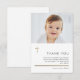 Minimalistisk Modern Guld Kors Foto Dop Tacksamhetskort med enkel typografi och foto. Klicka på redigeringsknappen för att anpassa denna design med dina detaljer.