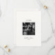 Det här bröllopsmeddelandet har en ren och redaktionell layout med ett centrerat foto och raffinerad typografi. Den minimalistiska designen använder mjukt mellanrum och enkel text för att skapa en modern, underdriven look som låter ditt foto sticka ut. Perfekt för par som vill ha något tidlöst, förhöjt och fotofokuserat. Baksidan har utrymme för en extra bild och en QR-kod för enkel delning av bröllopsdetaljer.