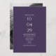 En modern minimalistisk design med ditt speciella datum och bröllopsdetaljer i klassisk, chic typografi på en lila bakgrund. Lägg till ditt favoritfoto på baksidan. Designad av Thisisnotme©
