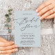 Dusty Blue Elegant Script Modern Minimalist Inbjudningskort för möhippan Card. Fira din speciella dag med den här eleganten och ett vackert bröllopskort för att passa ditt speciella tillfälle. Alla texterna är i förväg ordnade så att du enkelt och snabbt kan anpassa dig med dina egna detaljer.