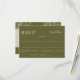 Det här Oliv grönt OSA-inneslutningskortet har en modern och funktionell design med minimalistisk typografi och en praktisk QR-kod för digitala svar. Den oliv grönt tonen i riken lägger till en jordad, jordisk elegans som passar perfekt ihop med neutralt bröllop palett. Perfekt för par som vill ha ett strömlinjeformat alternativ och ett alternativ till snyggt till traditionella svarskort, för med sig en modern sofistikering till inbjudan.