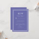 Den här moderna bröllopet OSA för djurutrymme är enkel och elegant och har en minimalistisk utformning med en dubbla ram vit gräns på en trendig runt ytterkant med blå bakgrund. Anpassa med datumet för att returnera svar efter och val av tre valda menyalternativkategorier. Det finns utrymme för gästerna att lägga till namn och de första menyalternativen för ett retursvar. Sallat och skript är helt vita. Kortets baksida matchar blått. Se till att se matchande returetiketter i en separat lista: https://www.zazzle.com/simple_wedding_rsvp periwinkle_blue_label-106565641905729910