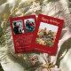 Det här minimalistiska moderna helgdag Red 3-fotonyhetsbrev i glad helg är perfekt för ett Julhälsningar elegant-kort. Den enkla, minimala designen har klassisk kalligrafi i guld med en rustik röd inställning för dina familjefotografier. Du kan anpassa kortet med tre av dina foton, ett på kortets framsida och två på baksidan. Lägg till din familj namn och år på framsidan, och ditt år i recensionsnoten på baksidan, för ett kort för anpassningsbar helgdag.
