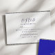 Omfamna den moderna elegansens höjdpunkt med vårt RSVP-kort, en utsökt blandning av enkelhet och sofistikation. Krättigt vitt kartongpapper sätter scenen för minimalistisk charm, medan kungliga blåa accenter lägger till en touch av kunglig allure. Gästerna kan välja sina menyalternativ med lätthet och lägga till en personlig touch på sitt svar. Baksidan glänser med chic glittrande silver och höjer kortet till en underdrift glamour. Med sina rena linjer och samtida design lovar vårt RSVP-kort att bli det perfekta komplementet till din vita och kungliga blåa bröllopsfest och säkerställer en oförglömlig firande av kärlek och union.