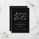 Meddela din speciella dag med elegans med våra minimalistiska moderna Save the Date-kort med modern text för bröllop. Dessa snygga och sofistikerade kort har en minimalistisk design som blandar samtida stil med tidlös charm. Varje kort är tillverkat av högkvalitativt kartong och visar upp en ren layout med modern typsnitt, vilket säkerställer att ditt meddelande är både tydligt och stilfullt.