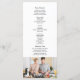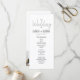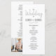 Enkel, minimalistisk, svart och vit, modernt skriftbröllopsprogram, med foto av paret på baksidan.