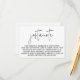 Lägg till en aning underskattad elegans till ditt evenemang med vårt minimalistiska moderna Snyggt - enkelt bara ett minneskort. Det här mångsidiga kortet har en elegant svartvit design och är perfekten till viktiga detaljer med dina gäster. Det moderna kalligrafiskript som parats med sofistikerad klassisk typografi skapar en förfinad estetik, skapar det en perfekt som passar för minimalistiskt bröllop, möhippor eller varje händelse som kräver tänkbar samordning. Den enkla men ändå slående designen ser till att ditt meddelande visas, medan den rena layouten gör det enkelt att läsa. Använda detta djurutrymmeskort för att förmedla viktiga detaljer som logi, scheman eller speciella instruktioner i stil. Den redigerbara mallen gör det möjligt att anpassa innehåll så att det passar din unika händelse, så att du får en sömlös och personlig kontakt till din kontorssvit. Detta kort, som har skapats för dem som uppskattar enkelhetens skönhet, kompletterar både moderna, contemporary och tidlösa teman. Oavsett om du har en inbjudan till elegant bröllop eller om du använder det som ett fristående detaljkort blandar dess klassiska men ändå chic ihop praktisk och sofistikerad teknik.