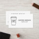 Minimalistiskt kaffepåverkskort med enkel design som visar ett exempel på ett sött kaffe kopp med ett hjärta. På baksidan finns din kontaktinformation. DESIGN TIP: Du kan ändra text och bakgrund till valfritt färg genom att klicka på knappen "anpassa".
