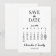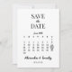 Fira din kärlek och tillkännage din bröllopsdag med stil med detta moderna minimalistiska Spara datum-kort med en kalender. Designat i tidlös svart och vit kombinerar denna mall romantisk kalligrafi med ett rent, modernt teckensnitt - perfekt för eleganta, snygga eller moderna bröllopsteman.