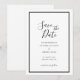 Islamisk Muslimsk Spara Datum-kort. Modernt vitt elfenbensfärgat kort med en klassisk stilren svart scriptfont skriven överst. Du kan anpassa all information och redigera typsnitt, stil och storlek med Designverktyget. Bröllopspappersvaror skapade för dig. Nikah-, bröllops- eller shaadi-ceremoni, förlovningsannons påminnelse. Hennes linje för Designstudio av Ayesha.