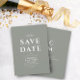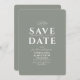 En minimalistisk grönt/ljust grönt spara datumkortet utan bild och en grey hand plockade illustration, som innehåller en kombination av fet och skript typsnitt för chic, på baksidan ett monogram och QR-kod för webbplatsen eller registret. Om du behöver matcha delar som inte finns i samlingen, så säg till (Maria) Lycklig för att hjälpa till!