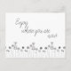 Ett minimalistiskt svartvitt blommönster och ett inspirerande citat "njut av var du är nu"