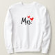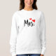 Visa upp din "Mrs"-status med stil med denna söta t-shirt med fet svart text och två röda hjärtan. Oavsett om du är brud, nygift eller stolt upptagen, ger denna t-shirt charm till alla utstyrslar. Perfekt för avslappnat vardagsbruk, smekmånad, brud shower eller som en genomtänkt present till din favorit Mrs. Tillverkad av mjuk, andningsbar tyg för trygghet och komfort hela dagen.