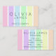 Ett chic och minimalistiskt, multifärgad (rosa, lila, blått, grönt, gult och orange) affärskort för regnbåge i rand. Anpassa genom att lägga till ditt namn och yrke i en svart minimalistisk text på framsidan, tillsammans med dina kontaktuppgifter och social-medier på baksidan.