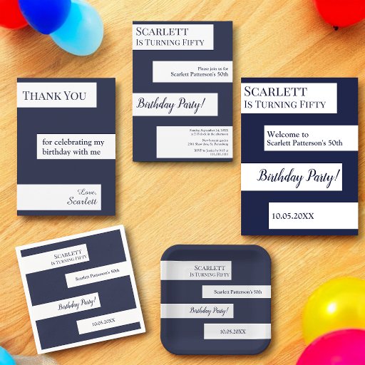 Minimalistisk Navyblå Vit Elegant Chic 50-årsdag Inbjudningar