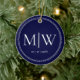 Minimalistisk Newlyweds Monogram Blue-Helgdag Julgransprydnad Keramik